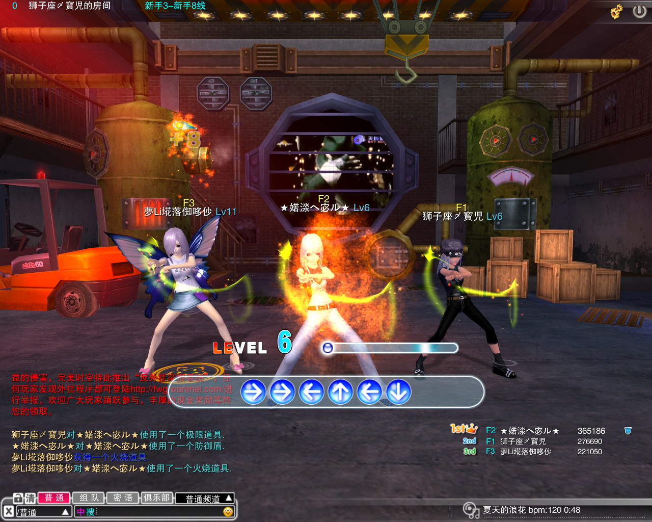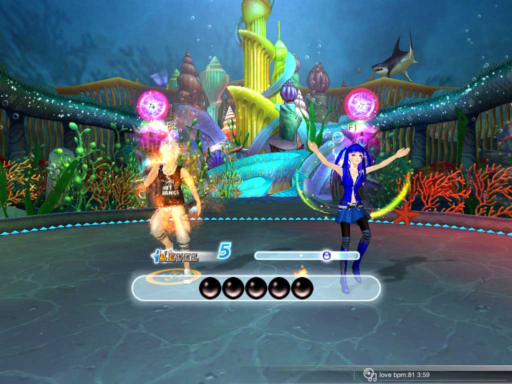 斗气模式通过连续的舞步使怒气积攒到一定阶段,根据屏幕的提示可按shift键释放怒气,在后面的舞步中出现绚酷的特效和舞步,更有多倍的积分奖励。