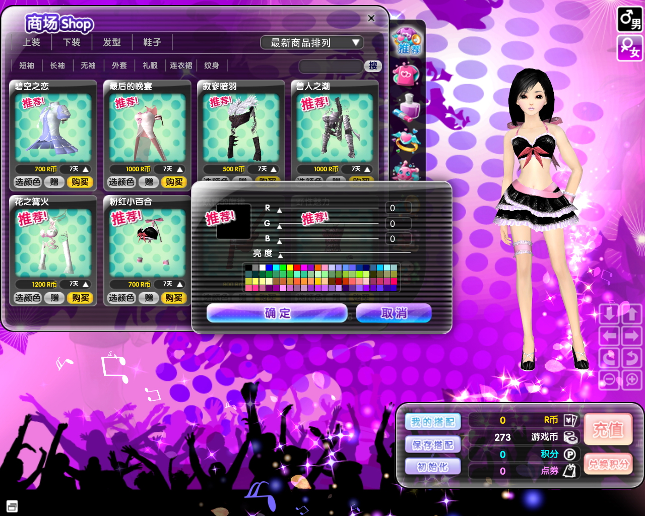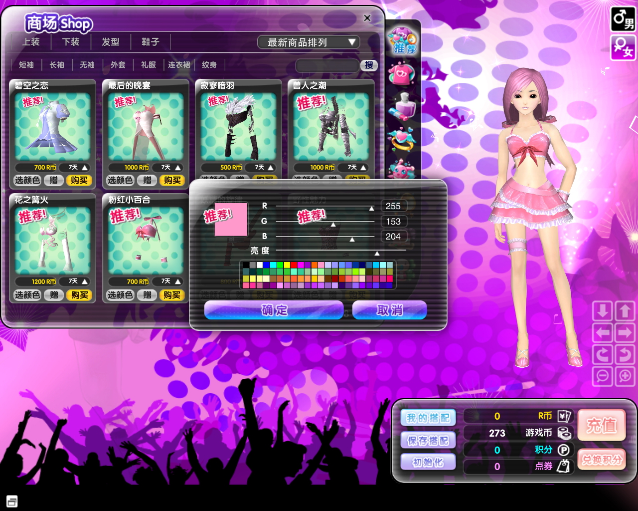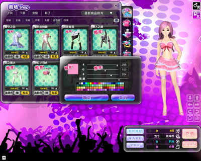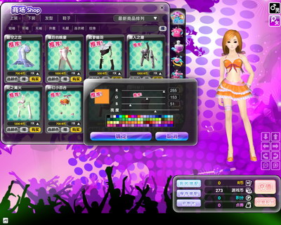 《梦幻舞厅》开发出一套成熟的自定义系统,支持自定义衣装颜色。爱炫的你,是不是非常关注每季的流行色,在这里,你可以根据最新潮流随意调整衣服、鞋子、配饰等的颜色,或者大胆、搞怪的你,不走寻常路,创造属于自己的流行色。1600多万种亮丽颜色供玩家调制,没有调不出的,只有想不到的。