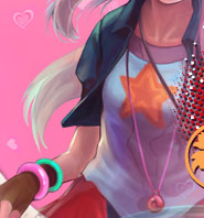 黑色的美瞳闪过一丝光芒,修长的睫毛以及眼部的彩妆花朵无不显示出清秀的模样,稍显红晕的脸颊突出青春洋溢的学生妆。游戏内彩妆选择如下: