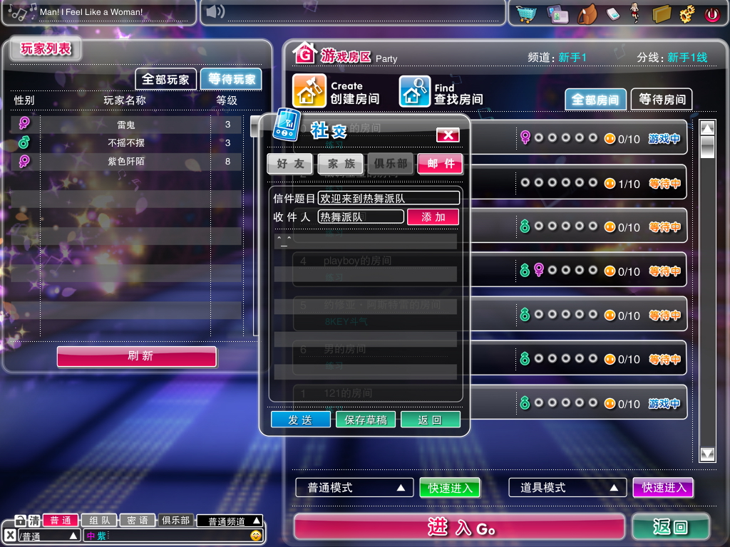 《热舞派对》可以给好友发送邮件,保存草稿;还可以接收系统通知,收取好友赠送的礼物。