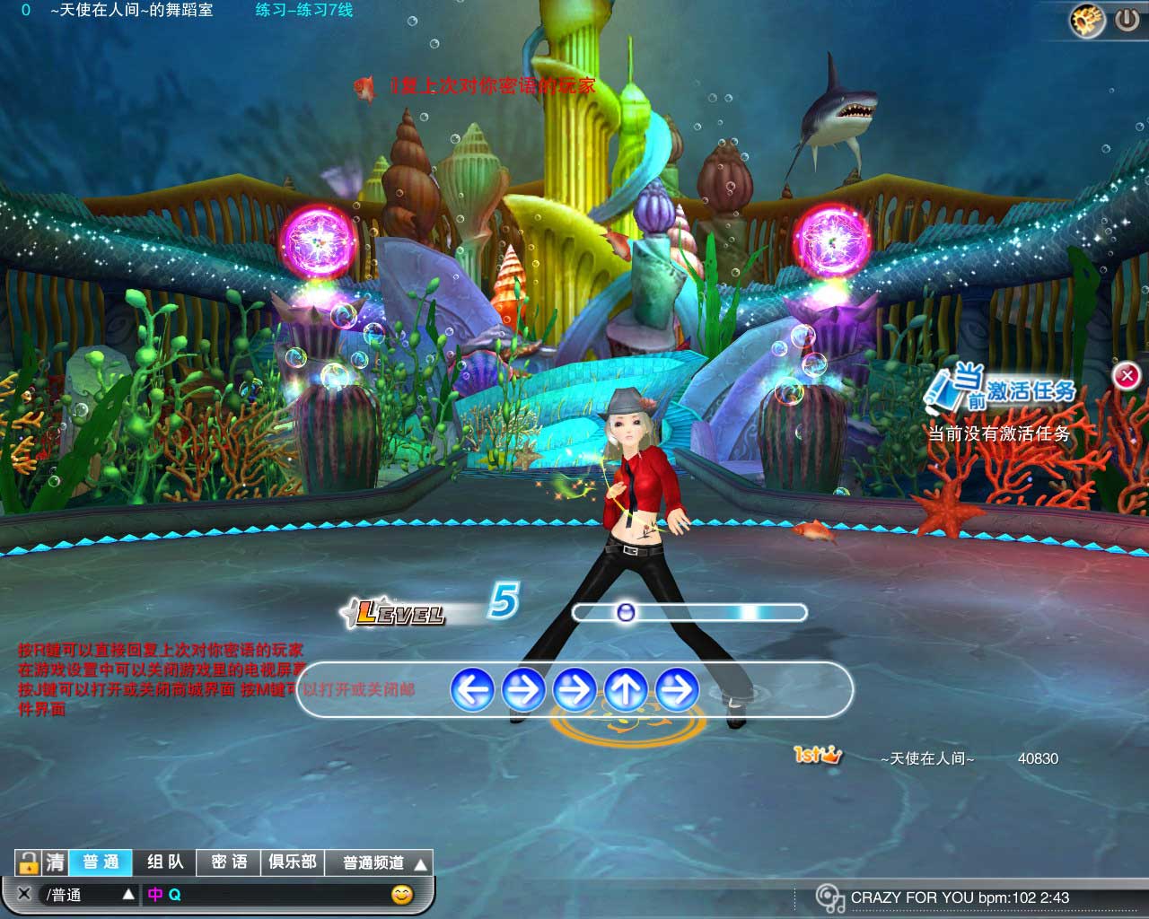 (1)人物创建完成后,进入舞场选择的界面,此时系统已经为新手玩家默认选择好练习频道和线路,玩家只需直接点击界面下方的