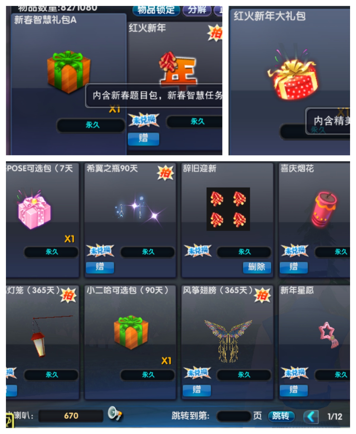 3. 商城上架66巧意经典礼包,购买可获得巧意入场券(有机会获得灵狐之耳、迎客时装等),66春节经典礼包,购买可获得春节幸运券(有机会获得烟火季节、春吟时装等)附赠红宝石。