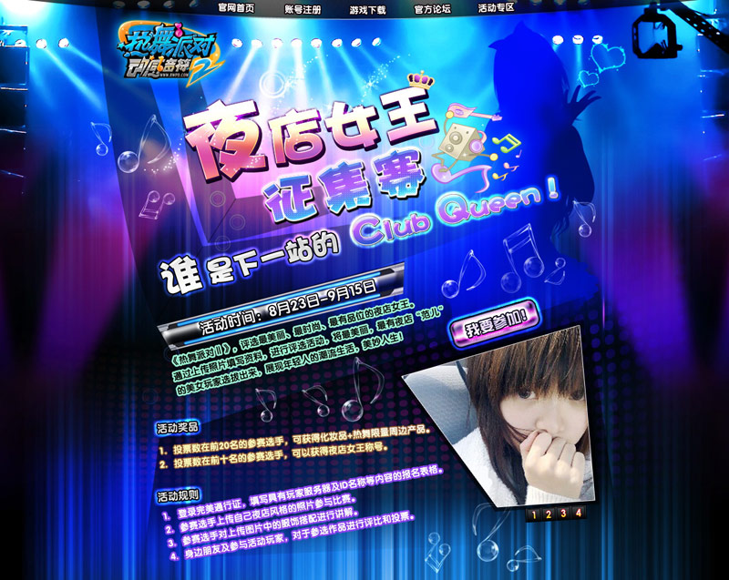 《热舞派对Ⅱ》夜店女王征集赛正在如火如荼的进行中!通过华丽丽的评选页面,我们将要找到热舞中最美丽、最时尚、最有品位的夜店节奏女王!玩家可以通过上传照片填写资料来参与评选活动,将最美丽,最有夜店“范儿”的一面展示出来!同时,本次活动也致力于将热舞的美女玩家们都选拔出来,展现属于大家的潮流生活,共享美妙人生!