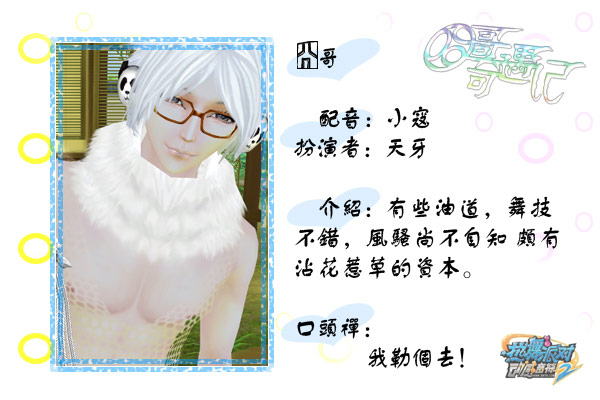 囧哥:有些油道,舞技不错,风骚尚不自知 颇有沾花惹草的资本。