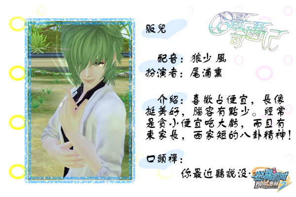 贩儿:喜欢占便宜,长像挺美好,脑容有点少。经常是贪小便宜吃大亏,而且有东家长,西家短的八卦精神!更惊悚的是,他悲剧的是个男人。。。。。。