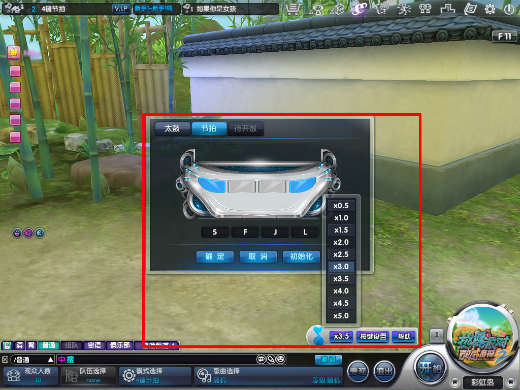 完成了“4键节拍”的学习后,也别忘记在开始跳舞之前先选好自己适应的键位和“音符”移动速度哦!键位嘛,肯定是人跟人都不同咯,这里也就不罗嗦了;关于“音符”移动速度呢,一般是选择2-4之间比较普遍,当然其它速度也会有一些玩家喜欢尝试呢。如果你还是新手,就先选择最适合自己的那个速度吧!