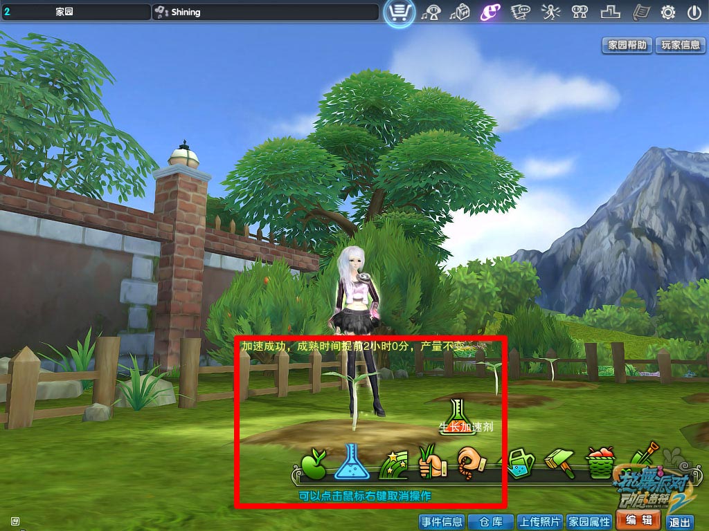 成功购买了“生长加速剂”后的玩家,可以进入热舞家园,走到土地、池塘、牧场和矿井区域,对正在生产/种植的作物使用它,即可成功提高生产效率。每个作物在12小时内只能使用一次“生长加速剂”,使用成功后成熟时间将提前2小时。“生长加速剂”对产量不产生影响。