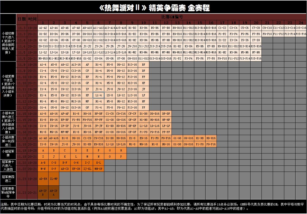 比赛时间:11月3日 - 11月30日 晚19-21点(详见比赛分组时间图)
