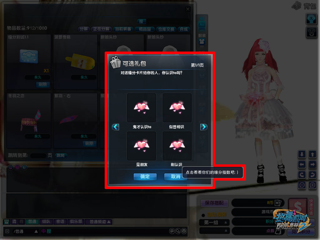 4.使用卡片得到缘分礼包,就可以开启缘分测试小游戏了。