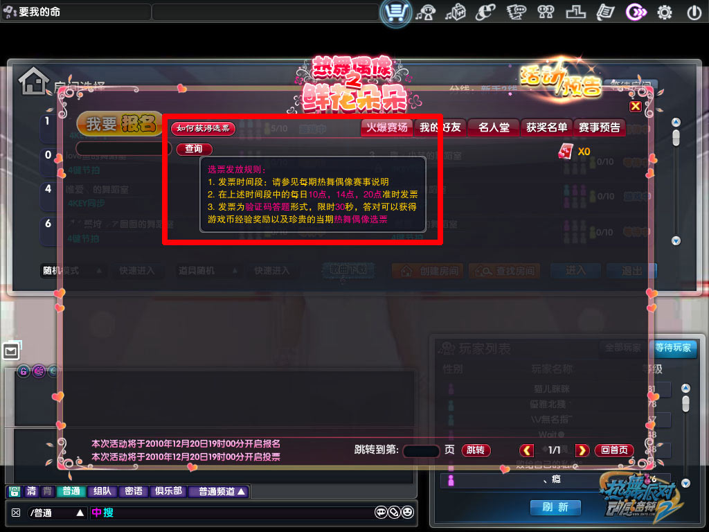 1. 在游戏过程中的跳舞玩家,超过发票时间登录的玩家将不会收到答题信息,请届时在房间或大厅中进行等待;